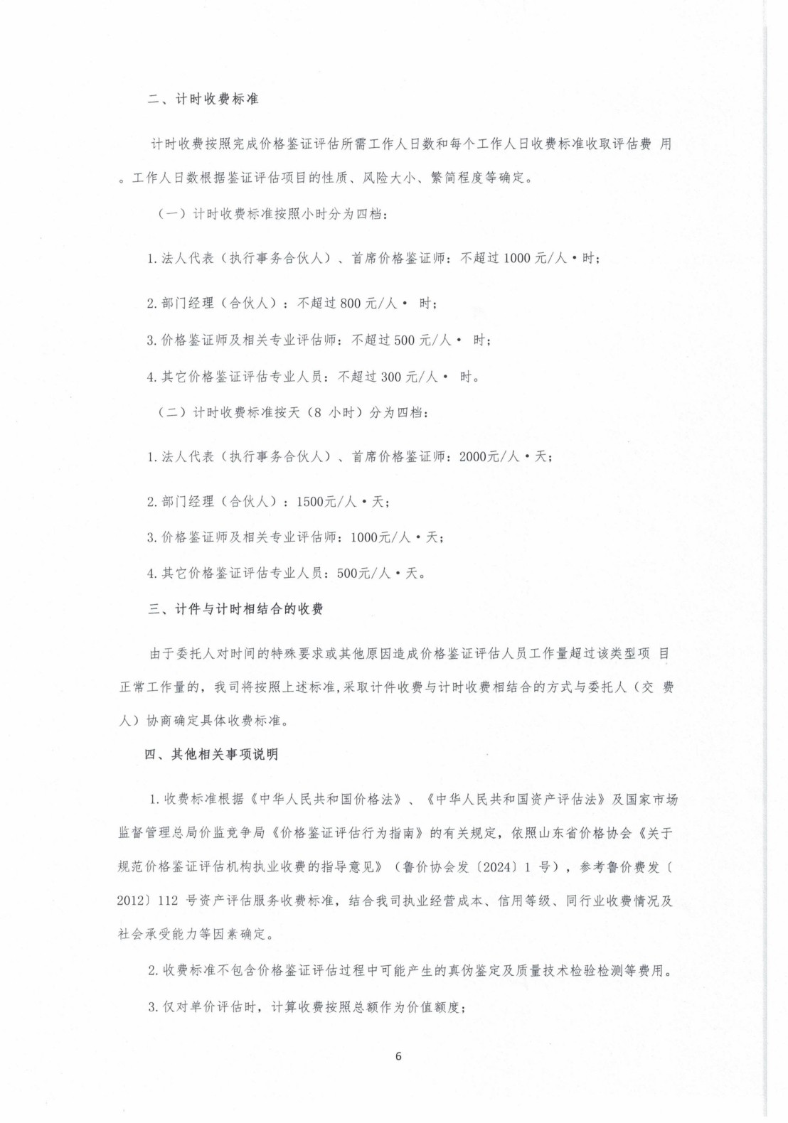 山东天诺价格评估有限公司价格评估项目收费标准公示书