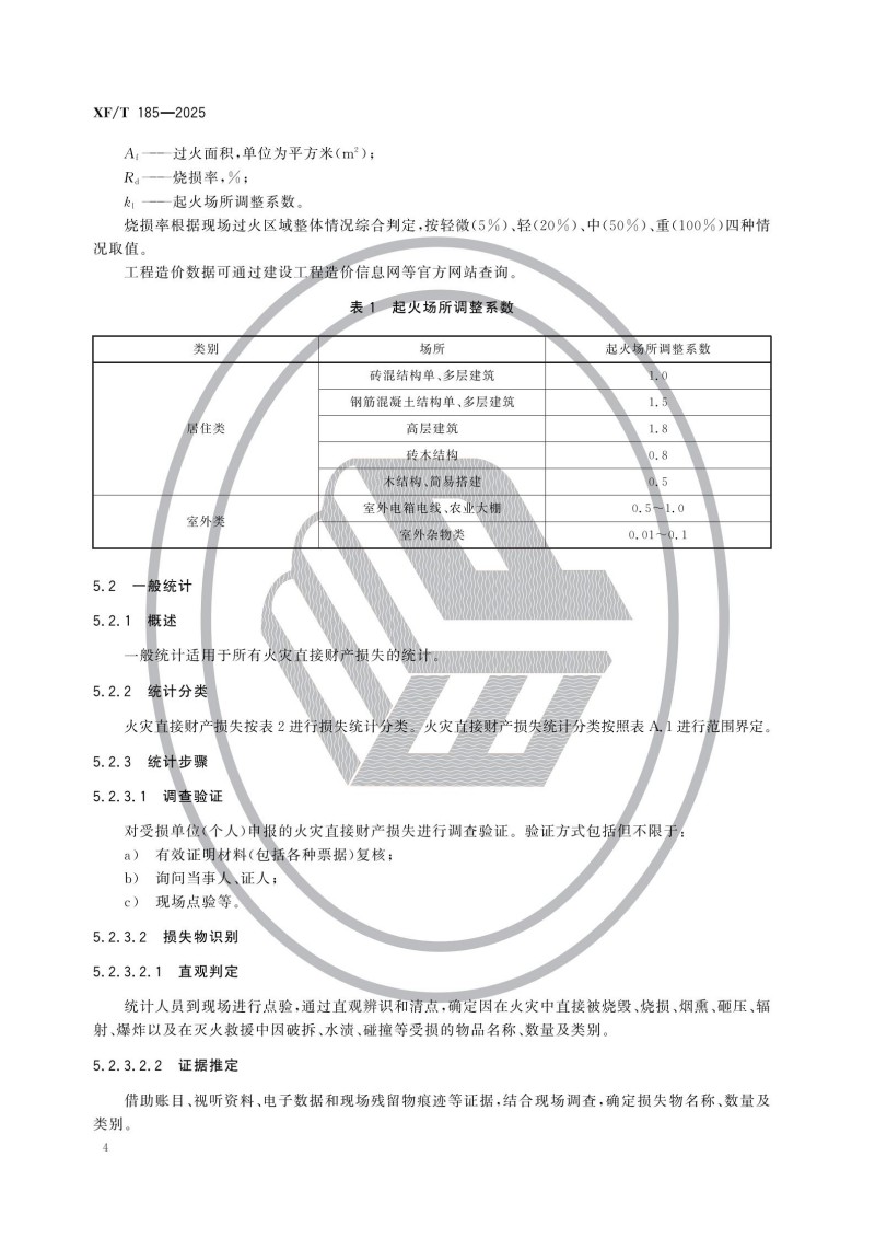 《火灾直接财产损失统计方法》