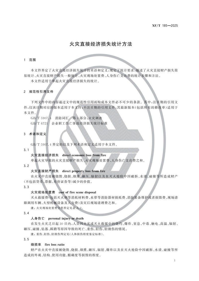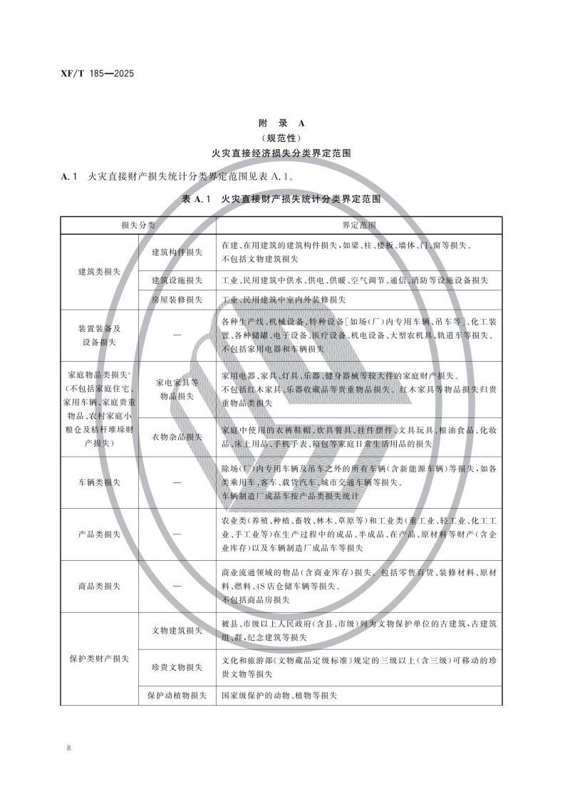 《火灾直接财产损失统计方法》